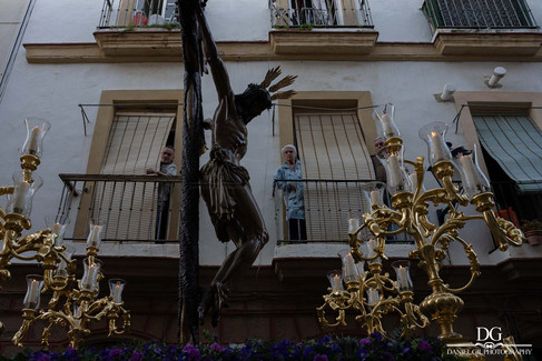 Instantes del Vía Crucis del Consejo Local de Hermandades y Cofradías de Cádiz con la imagen del Santísimo Cristo de la Misericordia de la Archicofradía de la Palma.