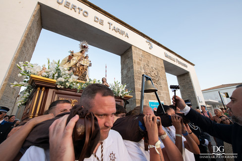 Instantes de la procesión marítima-terrestre de la imagen de la Virgen del Carmen en la ciudad de Tarifa, Cádiz.